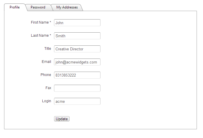 Under the profile settings section you can update your contact information, change your password, and add new addresses to your personal list. Administrative users can also add new locations and new users to the system.